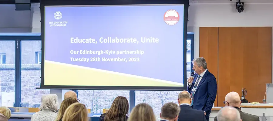 Stories from 2023 Edinburgh Global welcomes two new Regional Directors Edinburgh participates in Global Refugee Forum Educate, collaborate, unite: Our Edinburgh-Kyiv partnership Edinburgh Global’s 2023 summer activity Edinburgh co-hosts International Staff Week Una Europa Student Board member awarded the Sir William Darling Memorial Prize Galápagos decarbonisation: sustainable energy transition Mastercard Foundation Scholars Program: phase one impact report Student and staff mobility after Erasmus Connected learning in crisis settings Edinburgh Alum Dajana Dzanovic shares her refugee story At-risk academic continues his profession at Edinburgh At-risk academic shares his story Escaping Nazi occupied Austria: Hans Gál's story Una Europa spring round-up Celebrating the Cervantes Institute partnership Indonesian Dual Degree funding 2023 Changemaker awards Celebrating Europe Day: Past experiences, future opportunities Literatures and Cultures in the Face of War: Edinburgh-KNU Collaboration Urban Regeneration: Impacts of War lab Pollution sensors help asthmatics’ health University of Edinburgh-Africa Commitment Edinburgh and Una Europa Impact Report Seed funding collaborations in North America Support for those affected by the recent earthquakes in Turkey and Syria The Jameel Observatory's first year This article was published on 2025-01-09